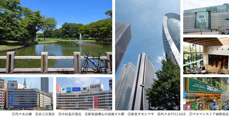 現地から徒歩圏内にある都内有数の自然スポット「代々木公園」。 こちらでは、四季折々の自然を眺めながらウォーキングや森林浴を楽しめるのはもちろん、多彩な施設も利用可能となっており、 スポーツやサイクリング、野鳥観察なども満喫できます。 また、活気ある新宿駅周辺の繁華街へも気軽に訪れることができる点も魅力的です。 休日のショッピングやグルメ、アミューズメント、イベントなど、楽しみは尽きないことでしょう。 彩り豊かな都心ならでは暮らしを是非体感してください。