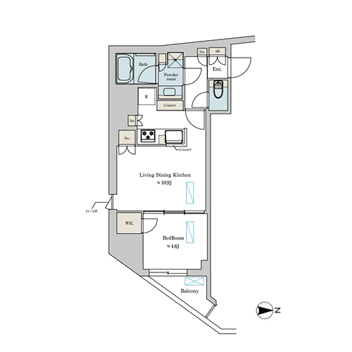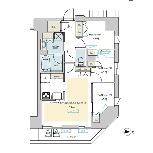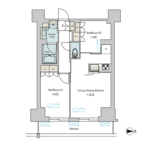 間取りは1DK(25u)から50uを超える3LDKまで幅広く採用し、多彩な生活スタイルに対応しました。 1DKタイプはお好みに合わせて2室を繋げて利用可能となっており、シングル層から支持を集めるトレンドのプランです。 また、1LDK〜3LDKの住戸は全てカウンターキッチン付き。各種設備や収納もバランス良く配置されています。
