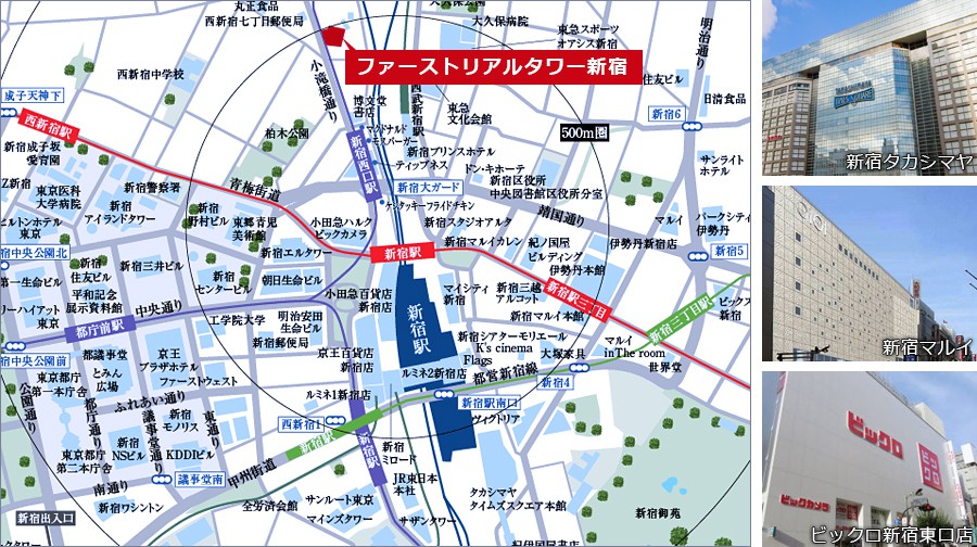 - ◎小田急百貨店新宿店まで徒歩約7分(約510m)