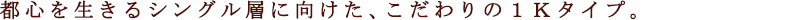 都心の中枢で颯爽を生きるシングル層に向けて、グラシア大塚では全61戸の1Kタイプをご用意しました。 専有面積は約25u。ベッドルームには約8畳の広さを確保し、ゆとりある空間を演出しています。 シンプルな設計でありながら、高品質な設備・仕様もバランス良く配置されており、高い快適性を実現。 心地の良い日常を支える、本物件こだわりの生活空間です。