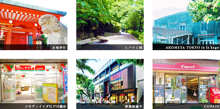 歴史ある寺社仏閣に加え、お洒落なカフェや老舗の名店も集う都内有数の人気エリア「神楽坂」。 徒歩圏内には、倉庫をリノベーションした商業施設「AKOMEYA TOKYO in la kagu」や、 風情ある街並みが広がる「神楽坂通り」、老舗のカフェ「COPAIN」など魅力的なスポットが満載です。 また、近隣には落ち着いた自然を堪能できる「江戸川公園」もあり、心地よい穏やかなひとときも堪能出来ます。 さらに、現地からは最寄りの神楽坂駅と江戸川橋駅の2駅2路線が利用可能。 多数の路線が乗り入れる飯田橋駅にも直通2分で繋がるため、都心各地へのアクセス環境も良好です。