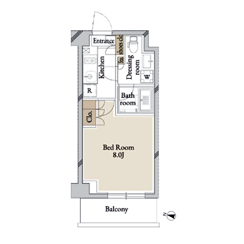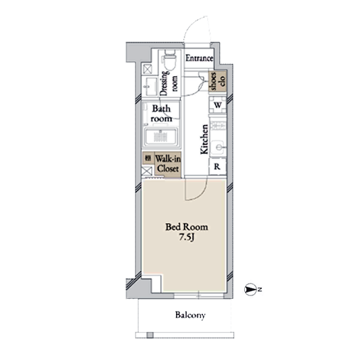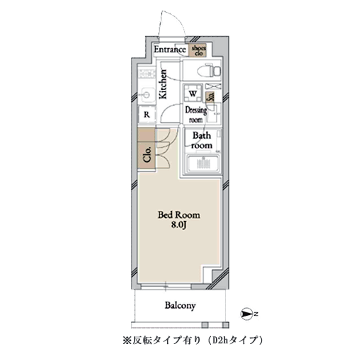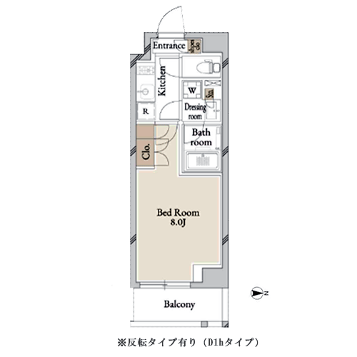 間取りは1K・1Dk・2LDKを採用しており、多様な生活スタイルに対応する住戸プランを実現しました。 1Kタイプでは居室に約7.5〜8畳の専有面積を確保。1階の住戸にはロフトも設置されています。 また、2室一体利用も可能な1DKタイプは、スライド式の仕切り扉があるためリモートワークの際も便利です。 2LDKタイプは全てカウンターキッチン付き。開放感のあるリビング・ダイニングも魅力的となっています。