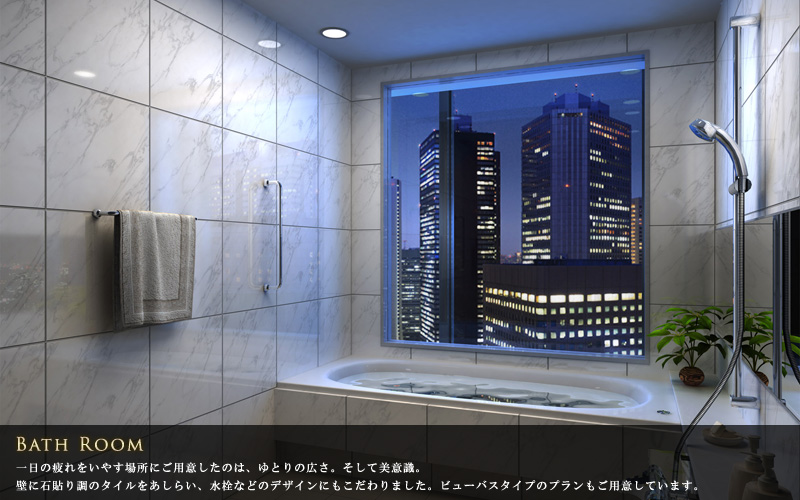 タワーライフだから叶えられる豊かな光と風と開放感。都市と自然の共存を体感する圧巻の眺望。 刻一刻と色を変える空を眺め、夜は光の海を眼下に望むタワーの眺望は、 尽きることのない風景のドラマを語ります。 超高層ならではの暮らしが、潤いとやすらぎをもたらす揺るぎない上質の世界を開きます。