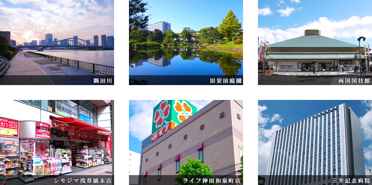 現地からはJR総武中央線と都営浅草線の2路線が利用可能となっており、都内各地へのアクセス環境も良好です。 駅を中心に商業施設も多数集まっているため、日々のお買い物や食事の際も便利な住環境が広がっています。 また、生活圏内には隅田川沿いの遊歩道(隅田川テラス)や旧安田庭園、浜町公園といった自然スポットも充実。 毎日のウォーキングや休日の気分転換も気軽に満喫することができます。