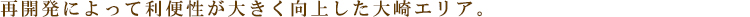 大崎駅周辺は再開発によって街並みも一変。なかでも商業施設や自然豊かな庭園などを擁した「ゲートシティ大崎」には、 ビジネスマンからファミリーまで幅広い年齢層が訪れ、平日・休日問わず賑わいをみせています。 また、都内有数の店舗数を誇る「戸越銀座商店街」も現地からは徒歩圏内。 通りには八百屋や精肉店といった食料品店をはじめ、様々なジャンルの飲食店や雑貨店などが建ち並んでおり、 下町情緒漂う賑やかな街並みを形成しています。
