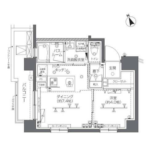 間取りは25u前後の1Kを中心にご用意しており、都心をアクティブに過ごすシングル層をメインターゲットとしました。 各住戸では質の高い設備・仕様をバランス良く配置し、暮らしやすい生活空間を実現。 また、フローリングやクロス、建具のカラーも上品にコーディネートされており、室内全体のデザイン性も高めています。