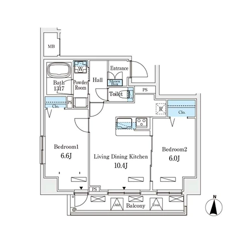南向きの角部屋にはDINKsやファミリーにも対応した2LDK(約51㎡)を採用し、多様なニーズに対応しています。
