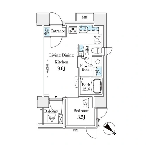 コンパクトながらも各種設備や収納といった必要な機能がバランス良く整っており、高い居住性を実現。