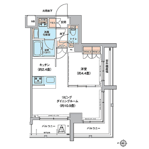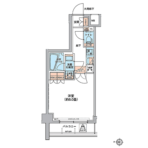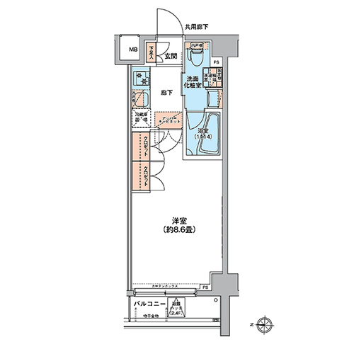 MFPRコート菊川では、1Kと1LDKの全8タイプのプランをご用意しました。 シングル向けの1Kタイプは居室に約8畳の広さを確保しており、ゆとりを生み出す生活空間を実現。 1LDKタイプでは、デザイン性の高いカウンターキッチンと開放感のあるリビング・ダイニングが魅力的です。 質の高いプライベート空間が、都心生活に深い安らぎをもたらします。