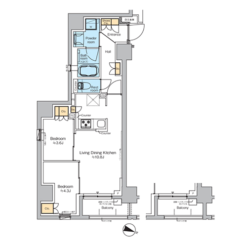 本物件の間取りは約30㎡~約49㎡の1LDK・2LDKを採用し、合計4タイプのお部屋をご用意しました。