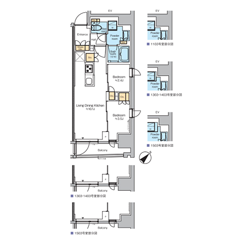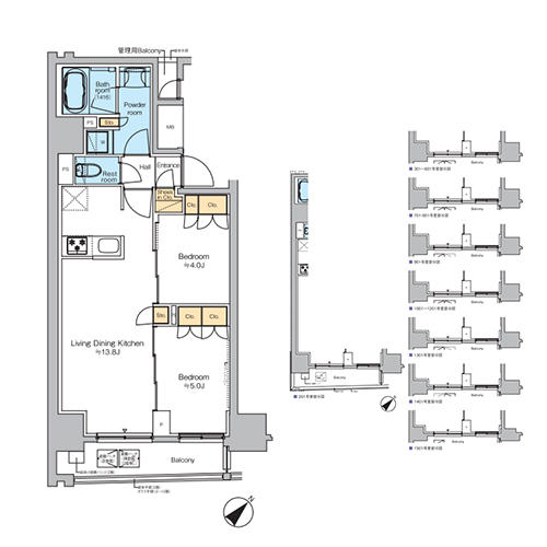 各部屋の枠内をクリックすると間取り図が表示されます。
