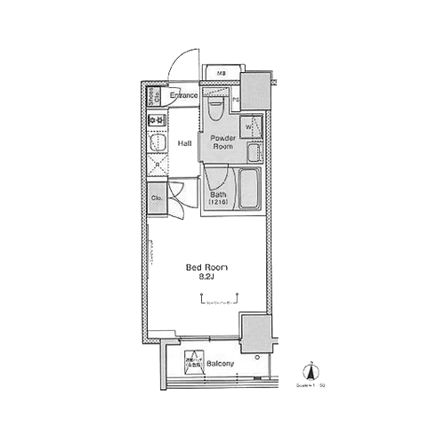 本物件の間取りは、約25㎡の1Kをメインとした計8タイプ。