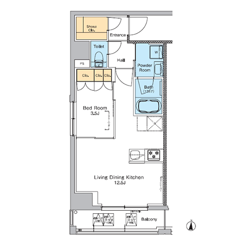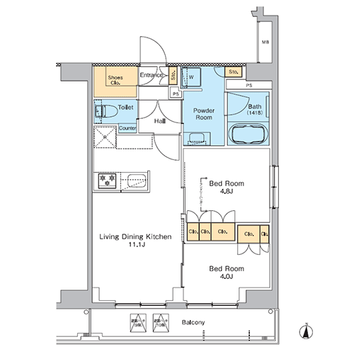 間取りは1K(約25㎡)から2LDK(約50㎡)までとなっており、幅広い層に向けたプランをご用意しました。 バルコニーは全住戸南向き。明るい陽光に満たされる魅力的なレイアウトとなっています。 さらに、機能的な水廻りや便利な収納スペースもバランス良く備え、優れた居住性を実現。 心地の良い都心生活をデザインする、こだわりの住空間です。