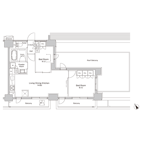 本物件の間取りは1LDKをメインとしたプランを多数ご用意しています。 リビング・ダイニングと寝室を分けることによって、暮らし中のオンとオフを分けることが可能です。 間取りはレイアウトしやすく生活動線にも配慮しており、機能性の高い空間を実現しました。