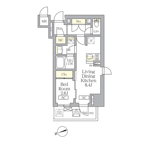 1DK(28戸)、1LDK(8戸)、2DK(28戸)