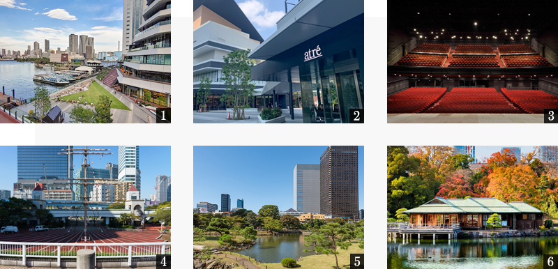 さらに、美しい景色が広がる竹芝桟橋、自然豊かな緑に癒される「旧芝離宮恩賜庭園」や「浜離宮恩賜庭園」も現地至近。